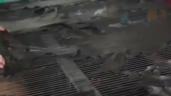 Up to 800 animals are loaded onto each truck, with cages stacked on top of each other. Cages containing live animals are commonly tossed from the tops of the trucks onto the ground 10 feet below, shattering the legs of the animals inside them. Many of the animals still had collars on, a sign that they were once someone’s beloved companion, stolen to be made into a fur coat.